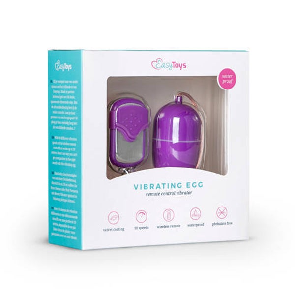 Paars tril ei met een zijdezachte coating uit de EasyToys Mini Vibe Collection. Dit vibrerend eitje is op afstand bestuurbaar en tilt het voorspel naar een ander niveau! Met dit tril ei maak je jouw partner helemaal gek. Kies uit een van de 10 vibratiesnelheden en plaag haar oneindig lang of breng haar snel tot een hoogtepunt. Jij houdt namelijk de controle! De afstandsbediening werkt tot wel 20 meter afstand. Zelfs onder water is dit vibrerend ei te gebruiken. Kortom, met dit vibrerend ei beleef zowel jij als je partner een zinderend spel!