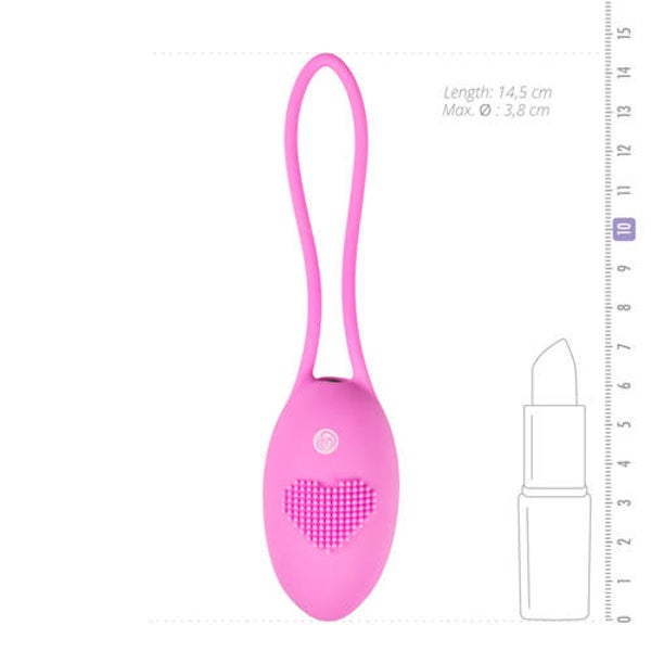 Trakteer jezelf op een nieuw speeltje en ga voor dit heerlijke vibrerende ei. Het traint je bekkenbodemspieren en masseert tegelijkertijd de binnenkant van je vagina door zijn vibraties en de nopjes aan de zijkanten. De nopjes hebben de vorm van een hart, wat het speeltje een leuk uiterlijk geeft. Het ei vibreert stilletjes waardoor het discreet kan worden gebruikt en is erg makkelijk te bedienen door middel van de drukknop op de zijkant. De lus zorgt ervoor dat hij na gebruik gemakkelijk te verwijderen is.
