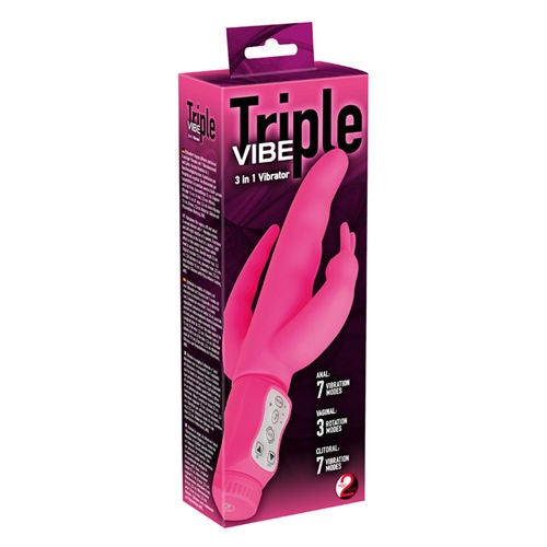 Ga voor driedubbel plezier met slechts één sextoy! De Triple Vibe Tarzan stimuleert de meest gevoelige plekjes tegelijkertijd. De gebogen top stimuleert de G-spot terwijl de rabbit de clitoris verwent met zijn kietelende oortjes. Tegelijkertijd wordt de anus gepenetreerd door de geribbelde stimulator. Dit alles, in combinatie met de roterende top en sterke vibraties, zorgt gegarandeerd voor een ongekend hoogtepunt. Je bedient de Triple Vibe Tarzan met de drukknopjes aan de voorkant van het handvat.