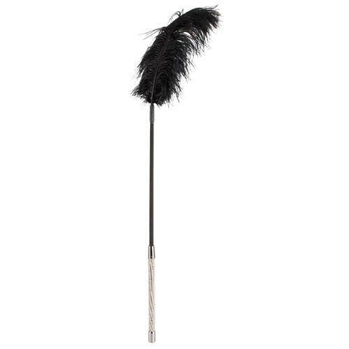 Plaag je partner tijdens een heerlijk SM-spel met deze leuke kietelaar met zwarte veren. Hij heeft een prachtig handvat dat versierd is met kleine strass steentjes. Hierdoor heeft de kietelaar een luxe uitstraling.