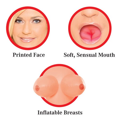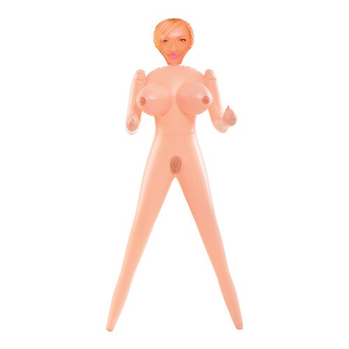 Luxe opblaaspop van Pipedream met blonde haren en slank lichaam. Opblaaspop Vicky voelt levensecht aan en heeft maar liefst drie openingen waarmee ze je kan verwennen, namelijk oraal, vaginaal en anaal. De opblaaspop ziet er zeer realistisch uit en heeft mooie details op het gezicht en lichaam. Inclusief reparatie set en instructies.