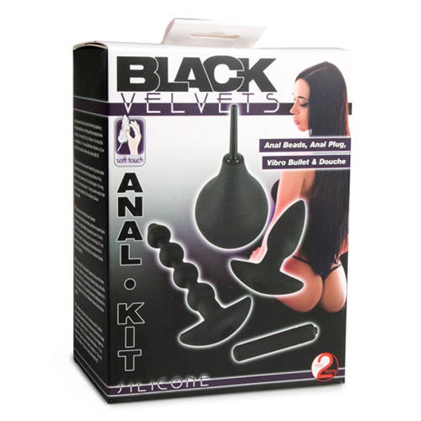 Met deze zwarte set uit de Black Velvets collectie ben jij in één keer klaar voor een spannend anaal avontuur! Deze complete set is perfect voor de beginnende gebruiker die wil experimenteren met verschillende anaal toys. De set bestaat uit een holle buttplug, een anaal ketting, een bullet vibrator en een anaal douche. Met deze set geniet je dus in één keer van verschillende toys. Begin met de anaal ketting en ga vervolgens voor de iets grotere buttplug. Behoefte aan nog meer stimulatie? Plaats dan eenvoudig de bullet vibrator in de buttplug. De bullet vibrator is voorzien van een handig drukknopje waarmee je eenvoudig de vibraties aan en uit zet. Verwen jezelf en ga voor een heerlijk hoogtepunt. Zowel de buttplug als anaal ketting zijn gemaakt van zacht, glad siliconen materiaal voor een moeiteloze penetratie. Wil je meer comfort tijdens penetratie? Combineer deze buttplug set dan met een anaal glijmiddel uit onze drogist. Wanneer je bent uitgespeeld reinig je de anus eenvoudig met de bijgeleverde anaal douche. Wil je ook je toys optimaal reinigen? Bestel dan direct een toycleaner mee en maak jouw set helemaal compleet!