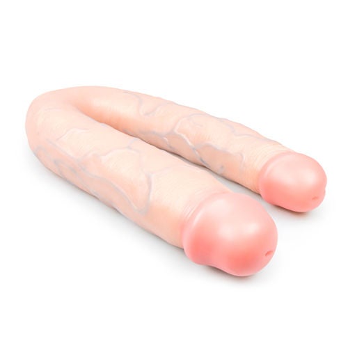 Ervaar een dubbele stimulatie met deze geweldige dubbele dildo! De dildo is perfect voor masturbatie, maar je kan hem ook samen met je partner gebruiken. Zijn U-vorm maakt hem gemakkelijk in gebruik, aangezien het niet nodig is hem eerst te buigen. Hij heeft een erg realistisch uiterlijk en voelt levensecht aan, en de grote eikel en aderen op de schacht zorgen voor nog meer stimulatie, zodat je een spannend hoogtepunt zal bereiken!