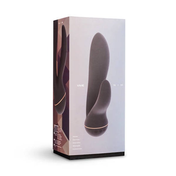 De Nim uit de Vive collectie is een luxe rabbit vibrator. De toy heeft 2 krachtige motoren en is omhult met een zijdezachte siliconen laag voor optimaal comfort. De schacht is stevig maar de flexibele clitorisstimulator buigt mee met het lichaam voor perfect contact in elke situatie. Er zijn 10 verschillende vibratiestanden beschikbaar. Ook heeft de vibrator een climax functie waarbij de vibraties meteen naar de hoogste stand gaan. Hou hiervoor de plusknop een paar seconden ingedrukt. De Nim is waterproof en oplaadbaar voor probleemloze nachten. Gebruik deze siliconen vibrator in combinatie met een glijmiddel op waterbasis.