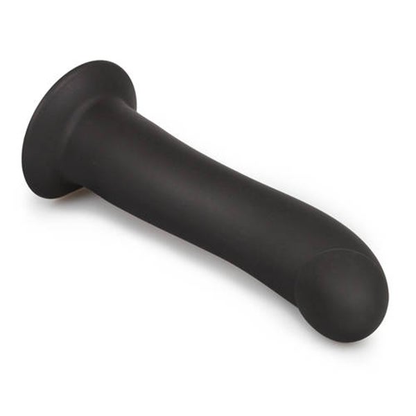 Deze kromme siliconen vibrator heeft een gladde schacht, een gebogen tip en een wijd uitlopende basis voor een perfect strap-on spelletje. De krachtige batterij bevindt zich in de basis, met een gemakkelijke one-touch bediening dat veilig is weggeborgen tijdens het gebruik. De tip is zo gebogen voor maximum G-spot stimulatie met een gladde siliconen schacht. Het stevige en toch flexibele materiaal is veilig voor je lichaam, gemakkelijk schoon te maken, en voelt zacht en mat aan. Werkt met de meeste standaard strap-on systemen. Afzonderlijk verkocht.