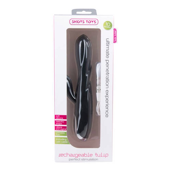 Deze zwarte oplaadbare vibrator van Shots Toys verwent jouw clitoris en G-spot tegelijkertijd! Daarnaast is de vibrator ook nog een echte schoonheid. Met 10 snelheden zit er altijd wel een vibratie bij geschikt voor jouw stemming. Het hoogkwalitatieve siliconenmateriaal past zich snel aan je lichaamstemperatuur aan waardoor je comfortabel geniet. De vibrator is gemakkelijk op te laden met de meegeleverde magnetische USB-kabel. Jouw seksleven zal nooit meer hetzelfde zijn!