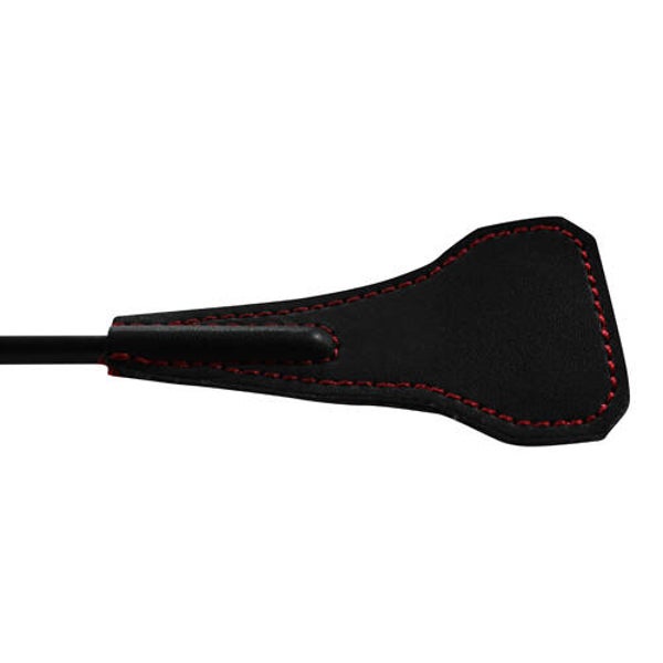 Kleine zwarte zweep met een paddel vormig vlak op het uiteinde. Gemaakt van leer in combinatie met synthetisch materiaal.Materiaal: 100% PolyesterKleur: zwart & rood