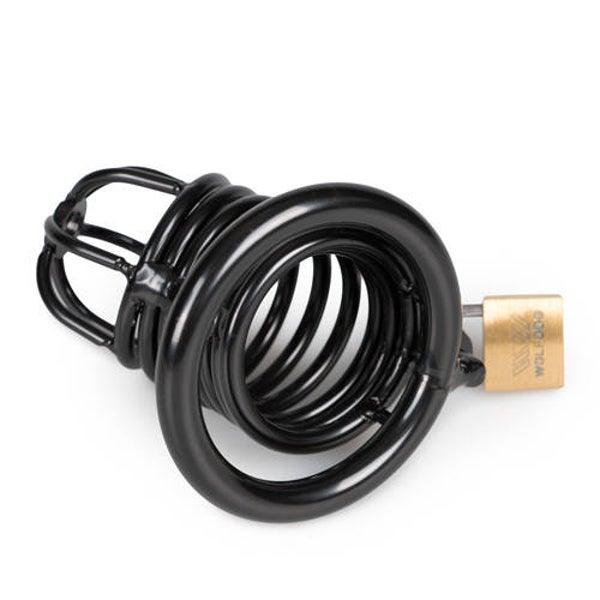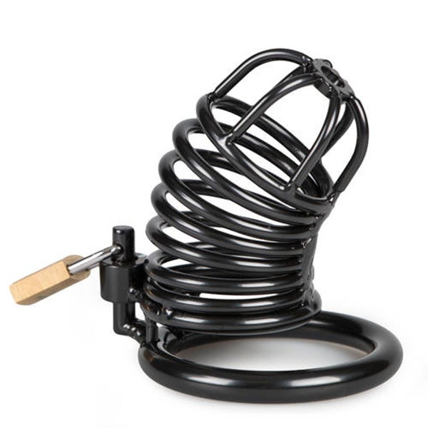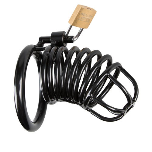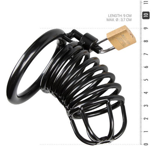De stoere zwarte peniskooi bewaakt de mannelijke vormen als geen andere sextoy ook zal kunnen. De kooi is volledig gemaakt van sterk, duurzaam metaal dat zelfs de ruigste avonturen zal doorstaan. De kooivormige schacht is voorzien van openingen waardoor de penis omhult is maar nog wel zichtbaar. Ook is het mogelijk om gewoon naar het toilet te gaan wanneer de kooi gedragen wordt. Dit maakt het geschikt voor langdurig gebruik. De kuisheidskooi sluit door middel van een metalen ring die om de penis en balzak wordt gedragen. De ring wordt met een slotje in de metalen schacht bevestigd. Hierdoor is het onmogelijk om de peniskooi af te doen wanneer deze op slot is.