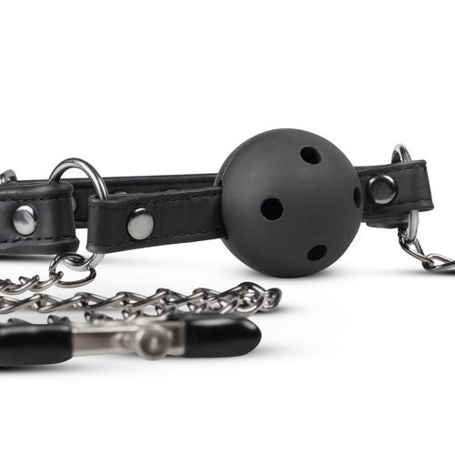 Open Ball Gag Met Tepelklemmen