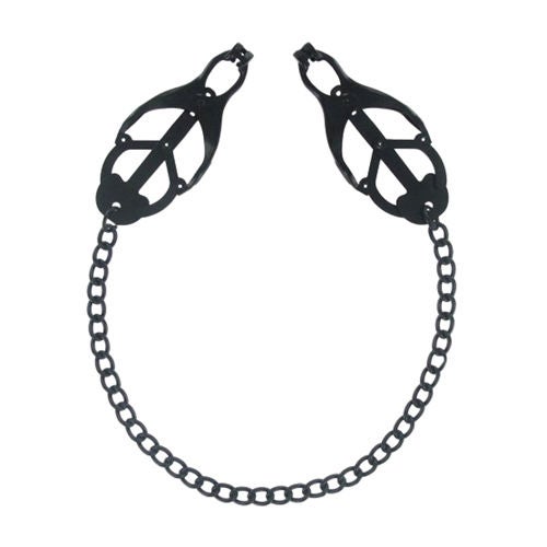 Oefen de ultieme macht uit met de Monarch Noir Nipple Vice van de Master Series! Deze tijdloze klassieker zorgt voor een lichte sensatie. Althans, totdat er aan de ketting wordt getrokken! Want dan maakt dat allerzachtste gevoel plaats voor een strenge bestraffing! Het klavervormige mechanisme zorgt voor een strakke en compromisloze greep op uitgerekend die zachte en tere plekjes. Hiermee krijg je je partner gegarandeerd onder controle. Of probeer eens een solospelletje!